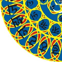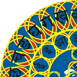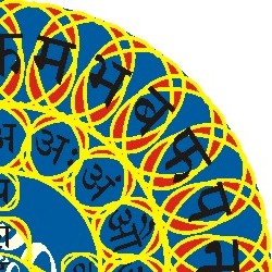 In this piece the Sanskrit alphabet is used as a design element within Phi-geometries. Sanskrit like many of the worlds written languages have their origin in the Phi spiral. By re-introducing it into the language it is possible to trigger the collective memory of this common bond.